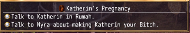 You don't have to talk to Nyra for her to visit Rumah but for her to start interacting with Dasan. To get Katherine to Rumah you have to save her from Zorad and have Rumah freed from orc opression, either as MC or Dasan as chief. You only have to increase your affection with Nyra if you want her to interact with Dasan, then you need to talk to Nyra after she gives you a blowjob.So... In order for Katherine to visit Rumah you must talk to Nyra, but at -10 Affection. MC can't ask for anything other than soup. MC says he has to improve relationship with her, does this mean Nyra has to be your wanita?