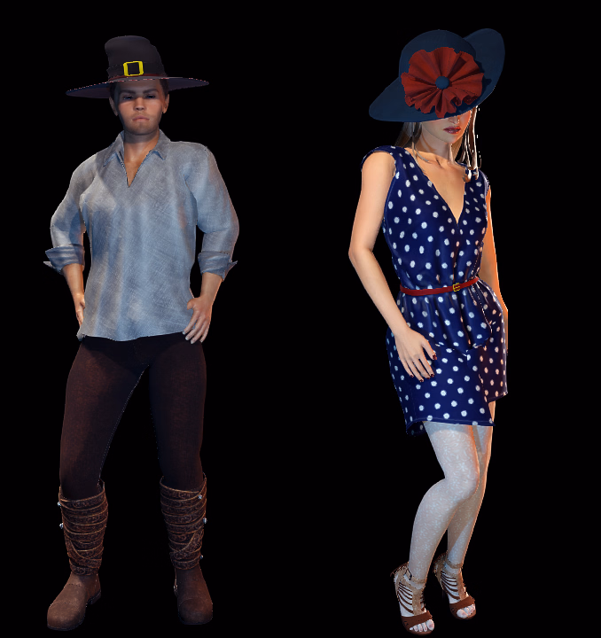 After that, I finally began working on the city’s first inhabitants. My initial focus was on creating models for background characters, meaning people who don’t play a major role in the story. Their main purpose is to make the streets feel more alive and to appear as guests inside the inn. For the women, I intentionally chose designs that don’t suggest there will be future content focused on them. I made three variations each for male and female townsfolk, which should hopefully provide enough visual variety in the city. Here’s an example: