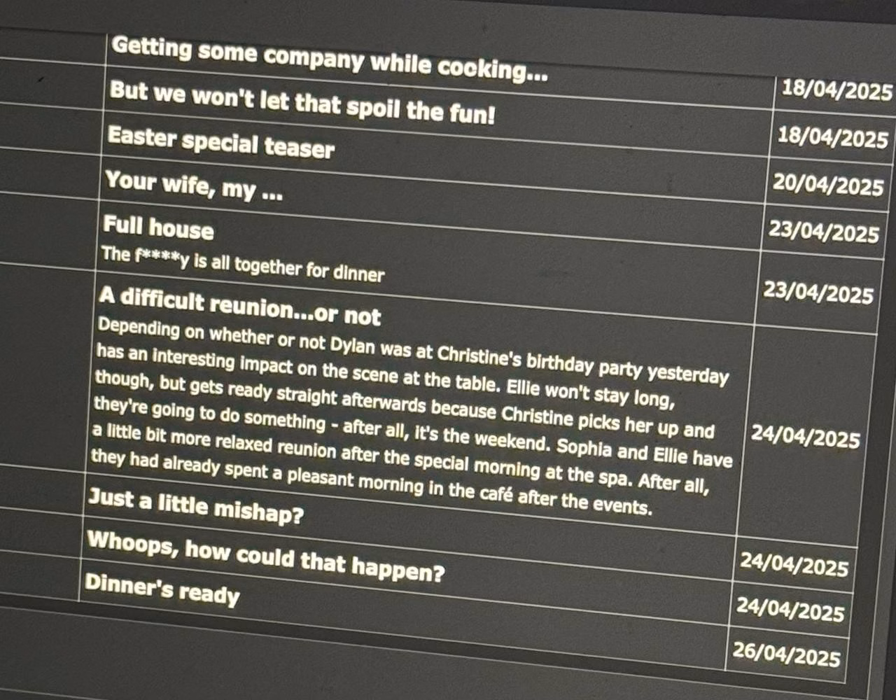 Part 1 and 2 of the update are finished and I have started with the third part, which is by far the shortest of all. These first two parts took up 372 renders. The update will therefore have at least 550-600 renders. Potentially even more. The number of story script pages is also pretty clear now. The update has approx. 57-58 pages of story script (about 48k-49k words!), which is by far the biggest update so far in terms of text.