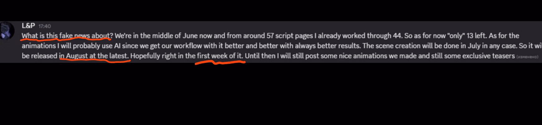 L&P's Quote: The scene creation will be done in July, in any case. So it will be released in August at the latest, hopefully, right in the first week of it.