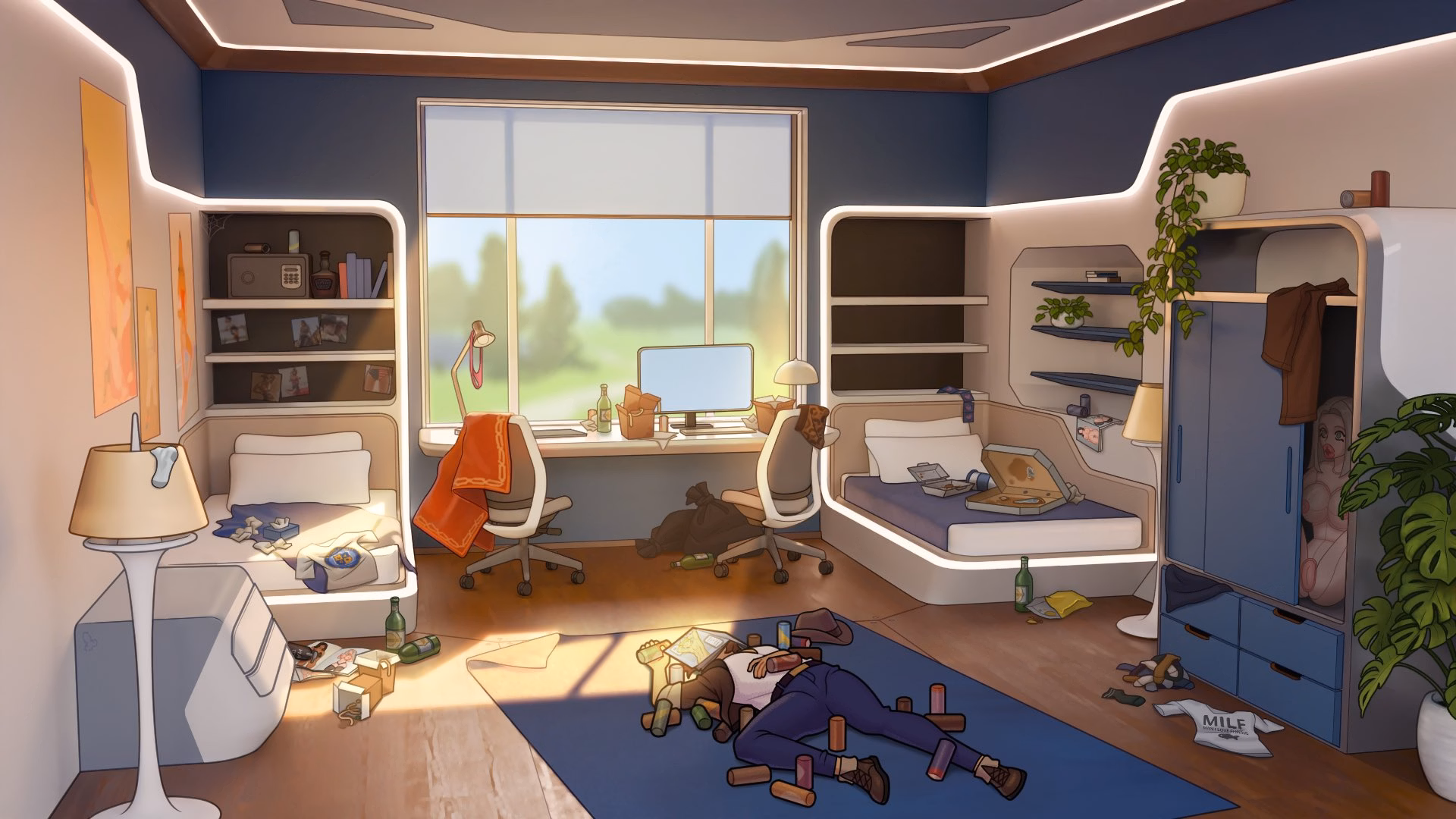 Obviously, new environment to explore is far from the only addition you should expect. For the first time, we will be introducing a whole new mechanic of dynamic events! From time to time, you will be able to stumble upon different characters visiting your room, see Clyde's day-to-day routine play out, unlock new unique interactions with your romantic partners, and even enjoy some secret h-content for the girls who have access to your private chambers! On top of that, we are adding a trophy system, which would allow you to collect memorabilia from your various adventures and store it on your shelves. Trophy system will be further expanded in coming updates, but the groundwork is already laid out.