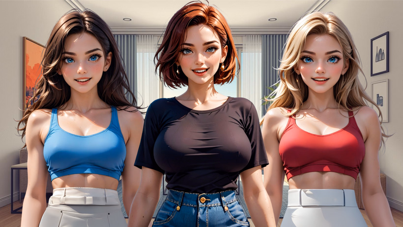 It's mostly the eye size that skews things here. Actual adults, even in the pseudo-anime style, have their eyes narrower and smaller, compared to teens and especially children. Here, the face is basically the same as the girls half the supposed "milf's" age.