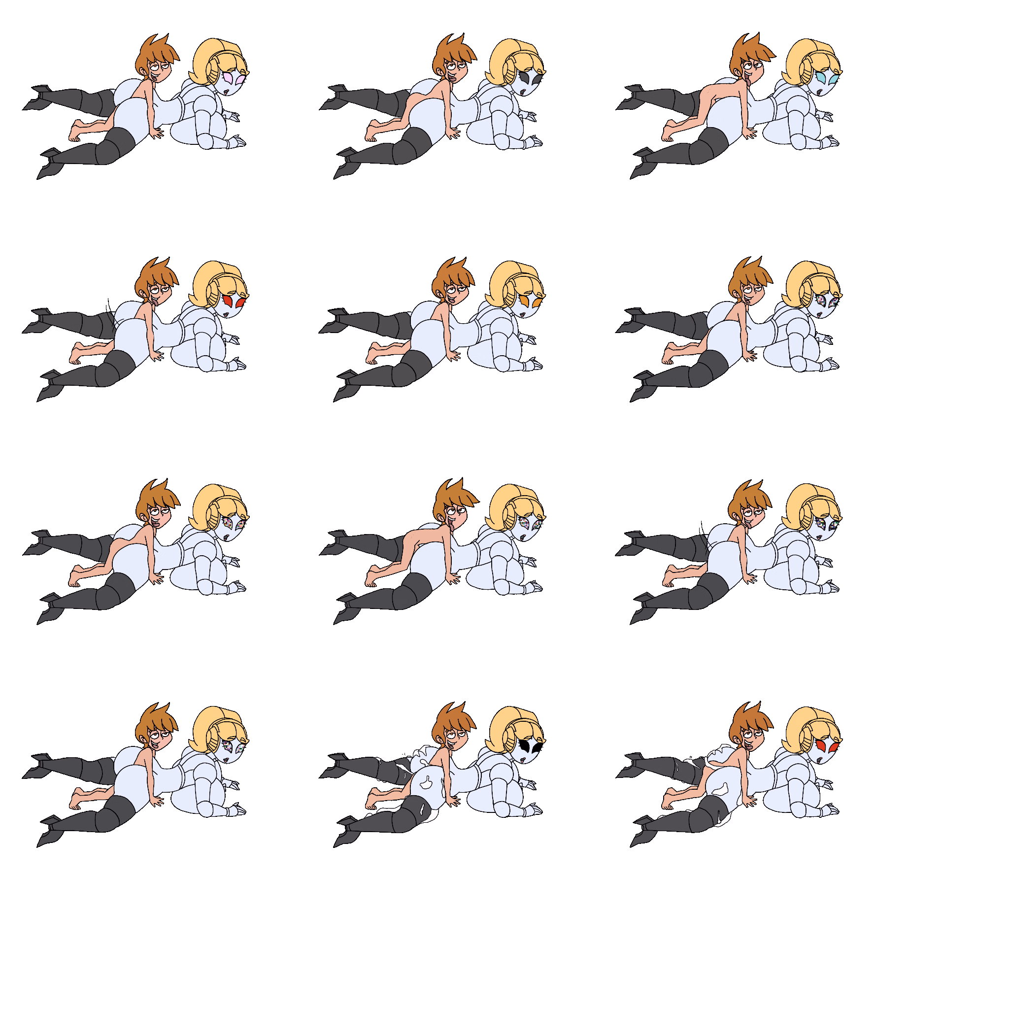The mushroom girl riding and kissing animation sure is cute.Bash:rm anim-*gif rm tmp/*png rmdir tmp mkdir tmp for i in */; do cd $i for j in *png; do magick $j -gravity northwest -crop 1368x770+0+0 -scale 50% +repage -background white -flatten ../tmp/$j-01.png magick $j -gravity northwest -crop 1368x770+0+770 -scale 50% +repage -background white -flatten ../tmp/$j-02.png done cd .. magick -size 512 -delay 8 -loop 0 tmp/*png -layers optimize anim-${i%/}.gif rm tmp/*png done
