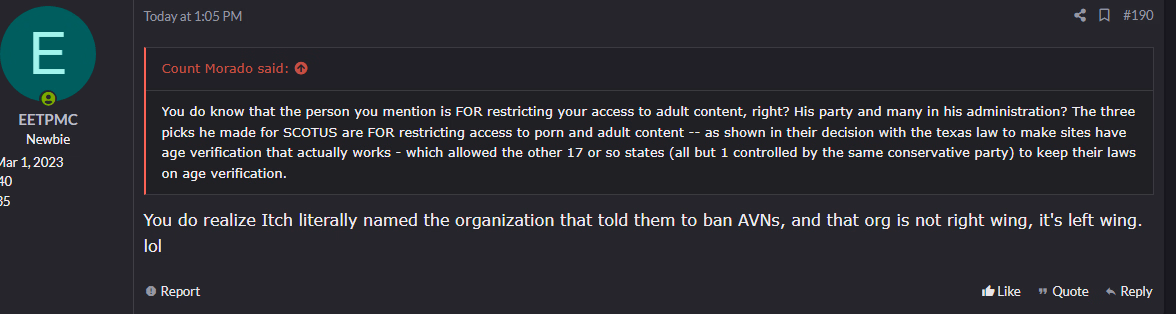However Itch says they are going to be deleting people's post based on TOS changes, which they are not saying what it is.