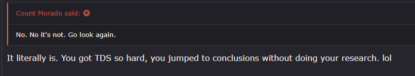so what is it that excuse your use of TDS? quote it... or shut up. "lol"