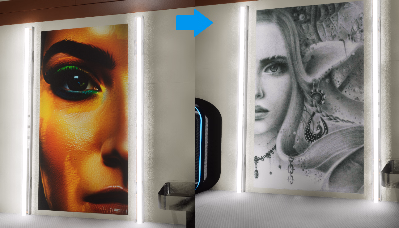 * Updated the A.I portrait on the wall with my own hand made pencil drawing :
