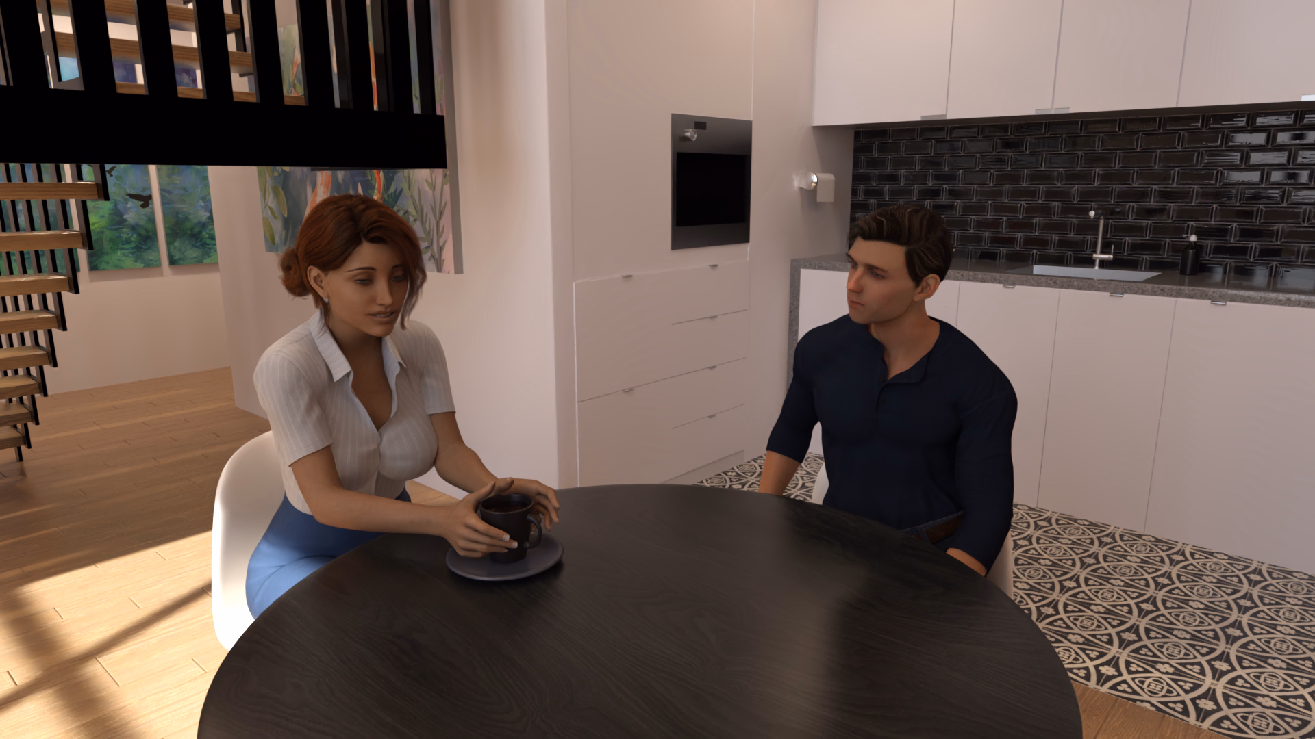 Angst is a story-driven visual novel about a married couple, Claire and Miles, navigating through Miles' new found fantasy of sharing his wife with other men.