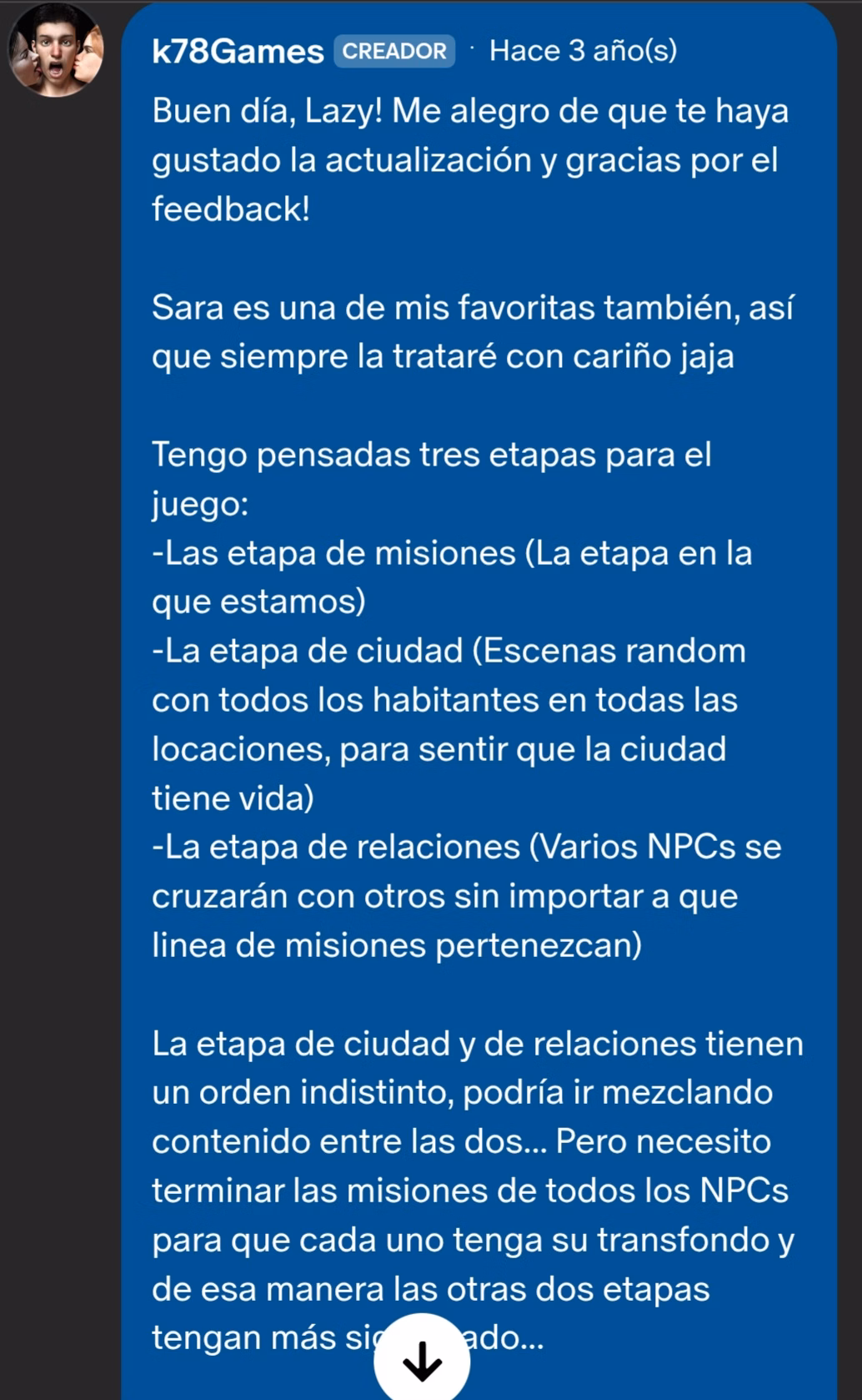 Here is the Dev's new post