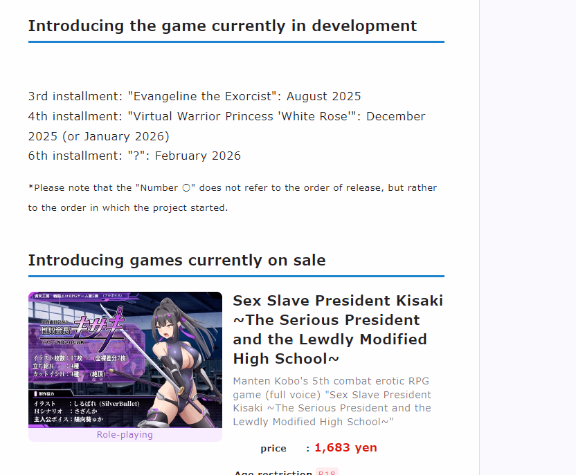 Kisaki (it's region locked on dlsite because it takes place in a school) came out in July, Evangeline in September. I guess they planned to release Evangeline's game third, but something probably went wrong during development, and they couldn't adhere to their own schedule. So yeah, Kisaki is the third game.