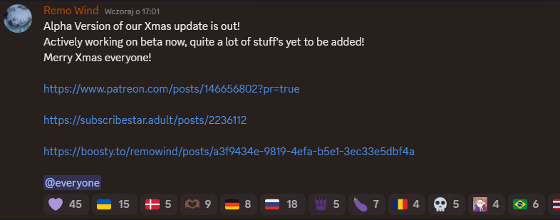 I don't. I was just wishing for that scene to be true in this update. Idk what kind of content there is in this patchDo you have the alpha link ? (Is that doggy scene with Mikasa going to be there in the upcoming version?)