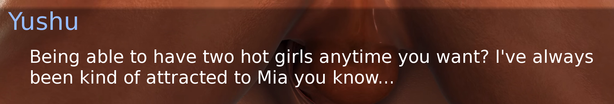 I agree... I hope if it's going to be any lesbian content, it will at least be avoidable/optional.Renders look awesome, even better in the newer part. But what's up with the animations? They look like cartoons compared to the renders. Doesn't even look like the same vn when an animation happens, looks like HS2. That's the only bad thing so far. I'd actually prefer it without those animations as different looking as they are compared to the renders. With 4 4090's you should be able to handle normal daz looking animations in no time. The ones in there now just kill the quality. Other than that all the Li's are amazing, and story is good so far. Hopefully the animations match the Daz rendering at some point. Good luck