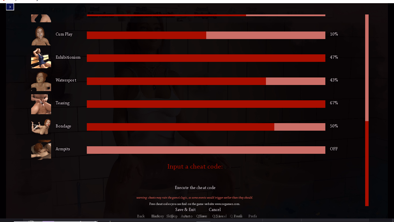 Put this attached URM file to ur game folder Alt+M opens blue screen and write money on search engine and put 1(Million) at least dont fly too high 1 m is enough.Also u if u put gallery unlocker mode in to game folder u open stats and ull see cheat option on top left.Click on it and write cheat codes as attached file an Execute the cheat code/save and exit.Thats all!!Also how to edit to have money. Editing the save gives error detecting it was edited and does nothing.