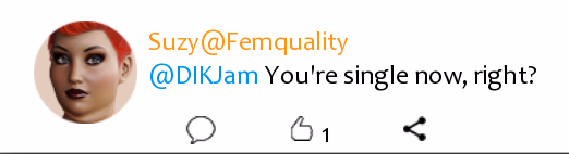 In my earlier partial play thru, I just said no to that. My MC has zero interest sticking his dick in any part of Quinn, he wouldn't even fuck her with Dawe's dick. I wouldn't be overjoyed about Camila either, not fond of whores in general (or her association with Quinn). I could go for Nicole, and yeah I know that kinda conflicts with what I just said... its just Nicole reminds me of some dancers I used to know RL so I've got a soft spot for her. I'm not sure if any of the HOTs would really appeal to me for a threesome with Sage. I'm just fickle like that.