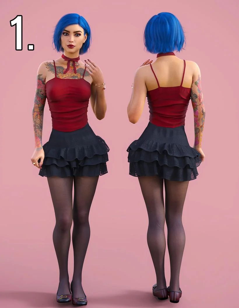 Yes, the maid costume with red tank top and black ruffle skirt.