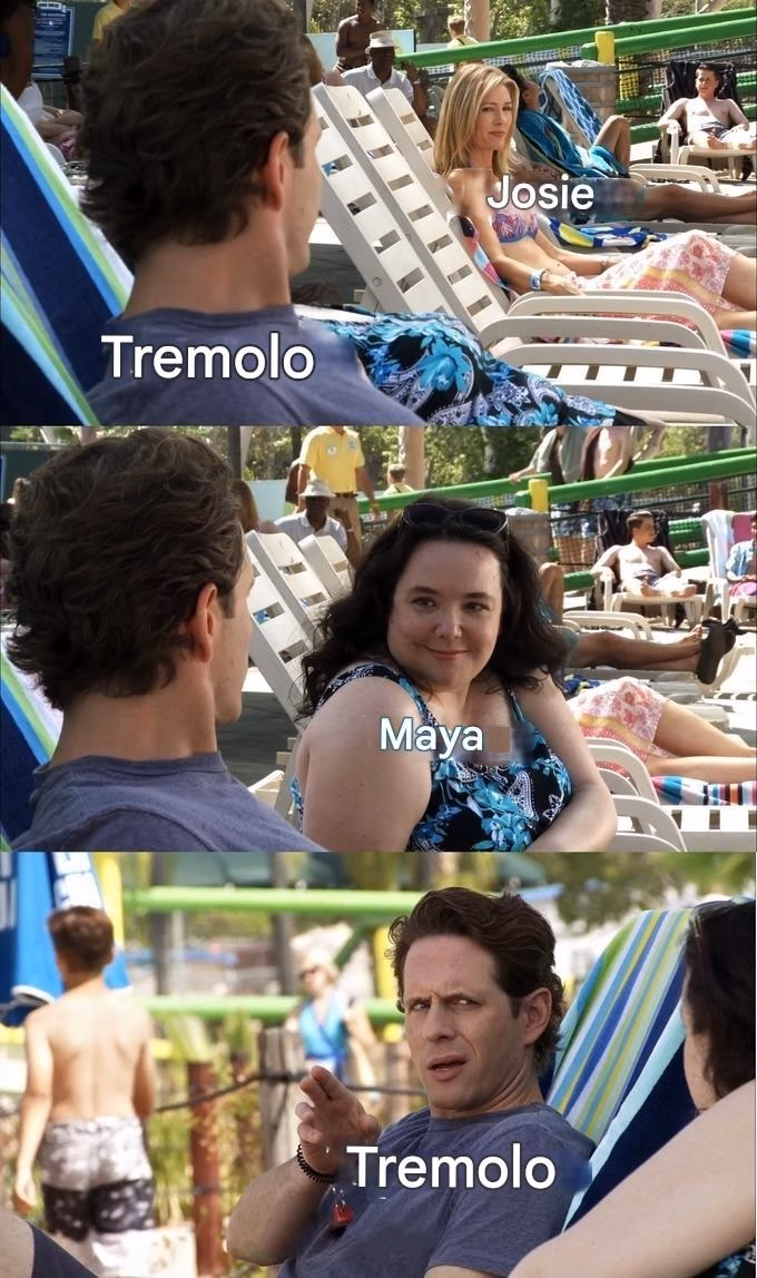 Tremolo managed to become friends with Maya, and that's precisely why he was upset with Josie, because she was cheating on his friend with him. He was obviously upset with Maya because she said she didn't have a boyfriend.