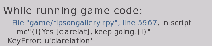 I tried with the full version instead of compressed and I think that error screen happens if you don't have any saves. When going from main menu to gallery, you configure the name and relationship, you cannot adjust the landlady new name, and launching a scene from the gallery will have an error screen (for exemple that bottom one with the landlady being drunk)I tried to replicate your issue, but wasn't able to down to exact line of dialogue referred.