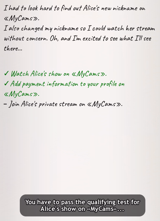hack her laptop when shes not at home.How to join Alice's private stream? I stuck here for a while now.