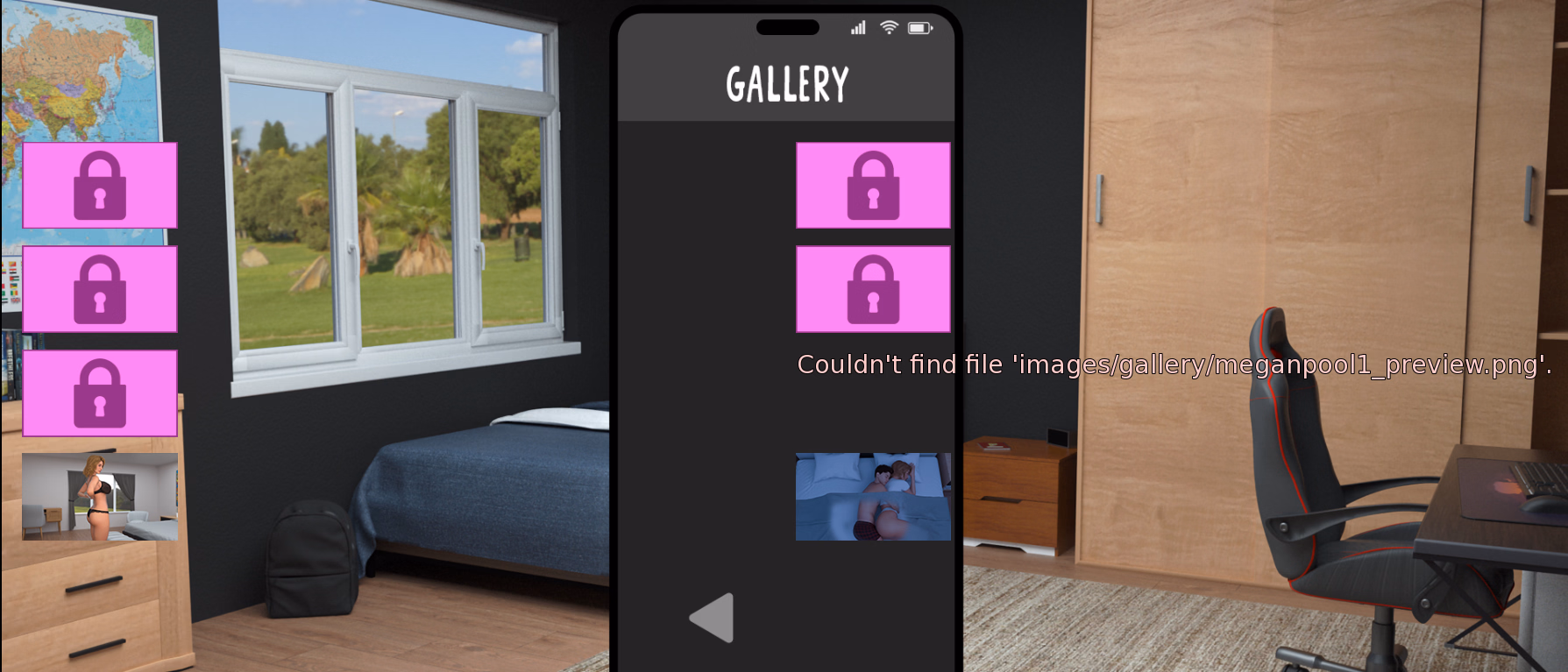 had a look at the gallery folder, and from the look of it the 2 locked scenes from the gallery, have nothing connected to them