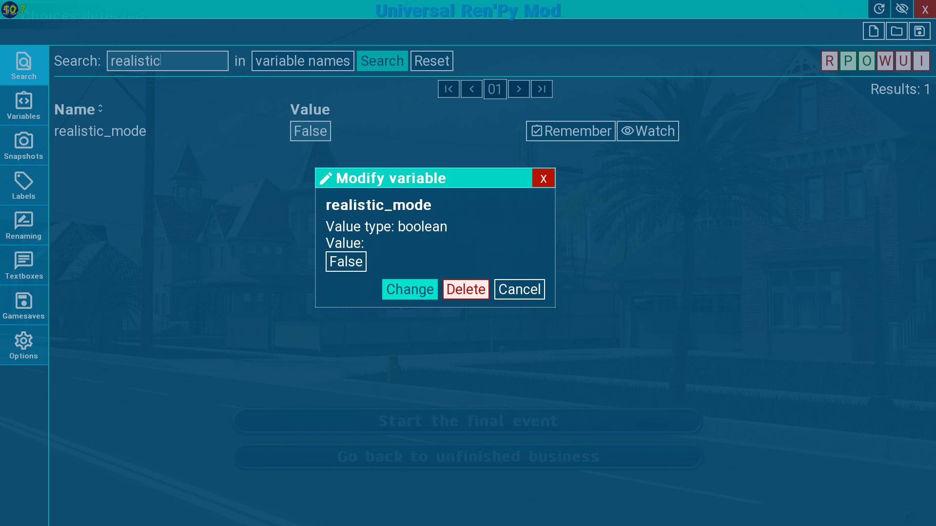 If disabling via smartphone does not work, you can try installing URM (just unzip it into the game's game folder) and then find this variable and set it to False.