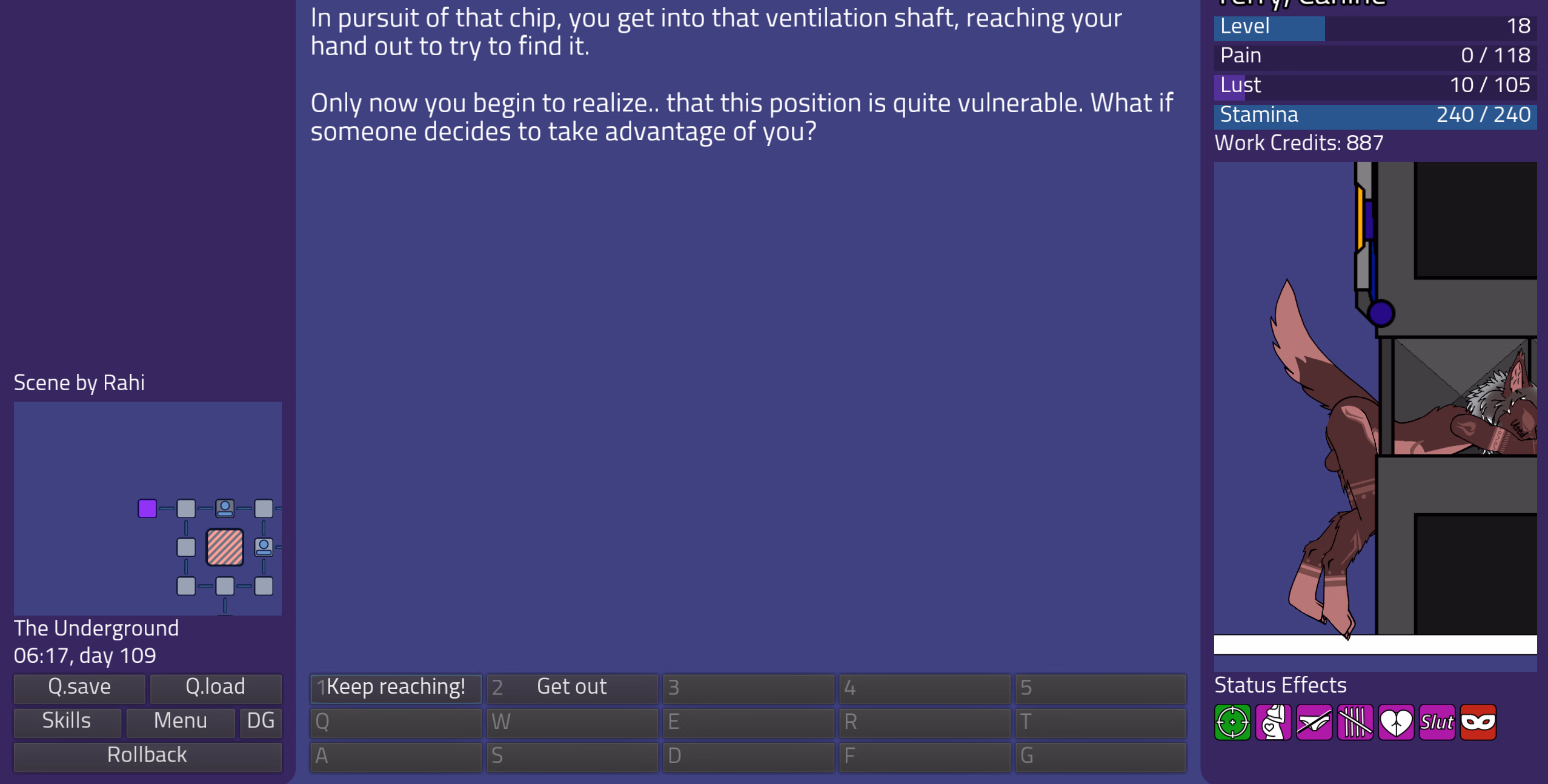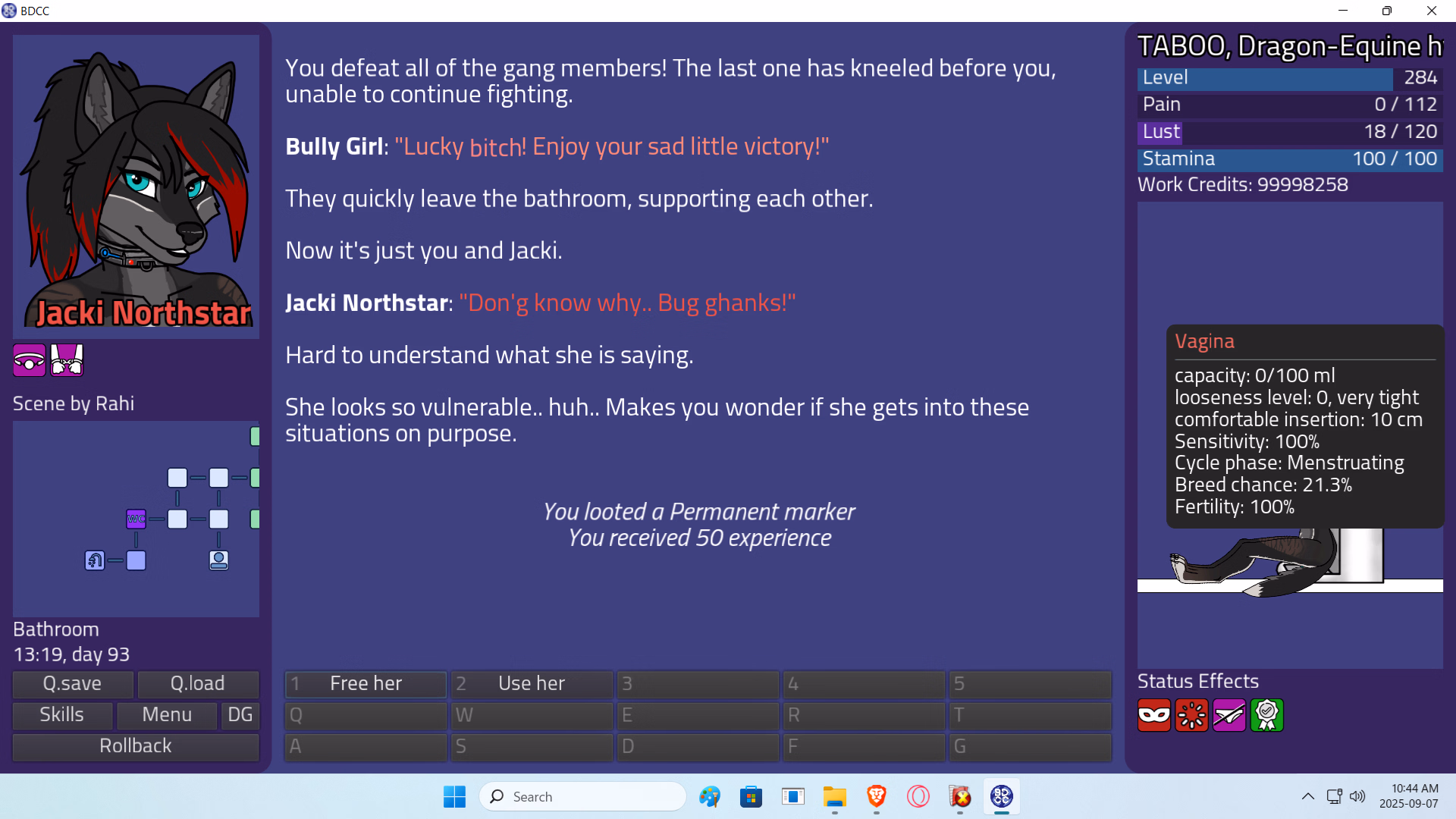 It's been pinned shut with piercing by Quinn. If you finish Jacki's quest line you get the option to unpin her coochie.Things that make you go hmmmmmmm,