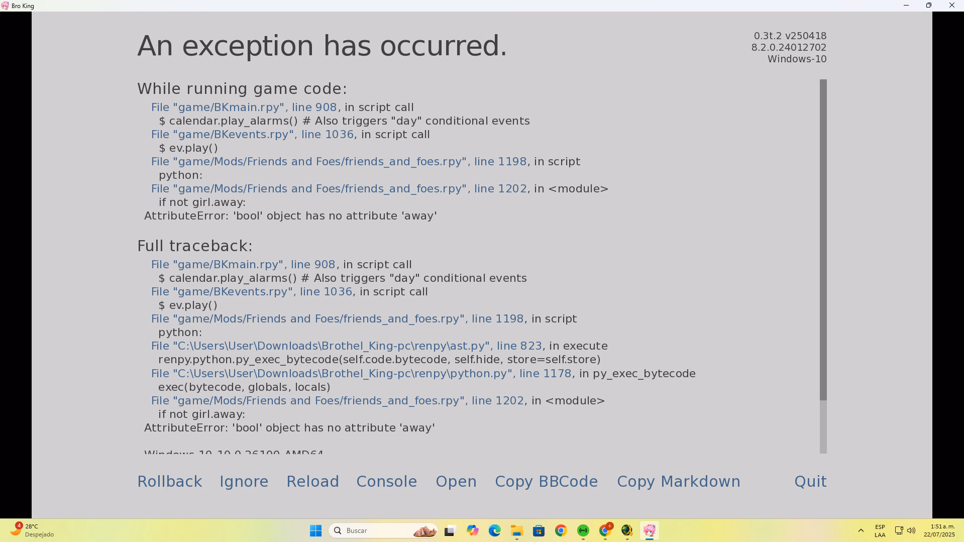 Archivo "C:\Usuarios\Usuario\Descargas\Brothel_King-pc\renpy\python.py", línea 1178, en py_exec_bytecode