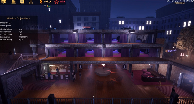 Brothel Master, a 3D brothel management game. In the game you will be taking on the role of a new brothel owner,