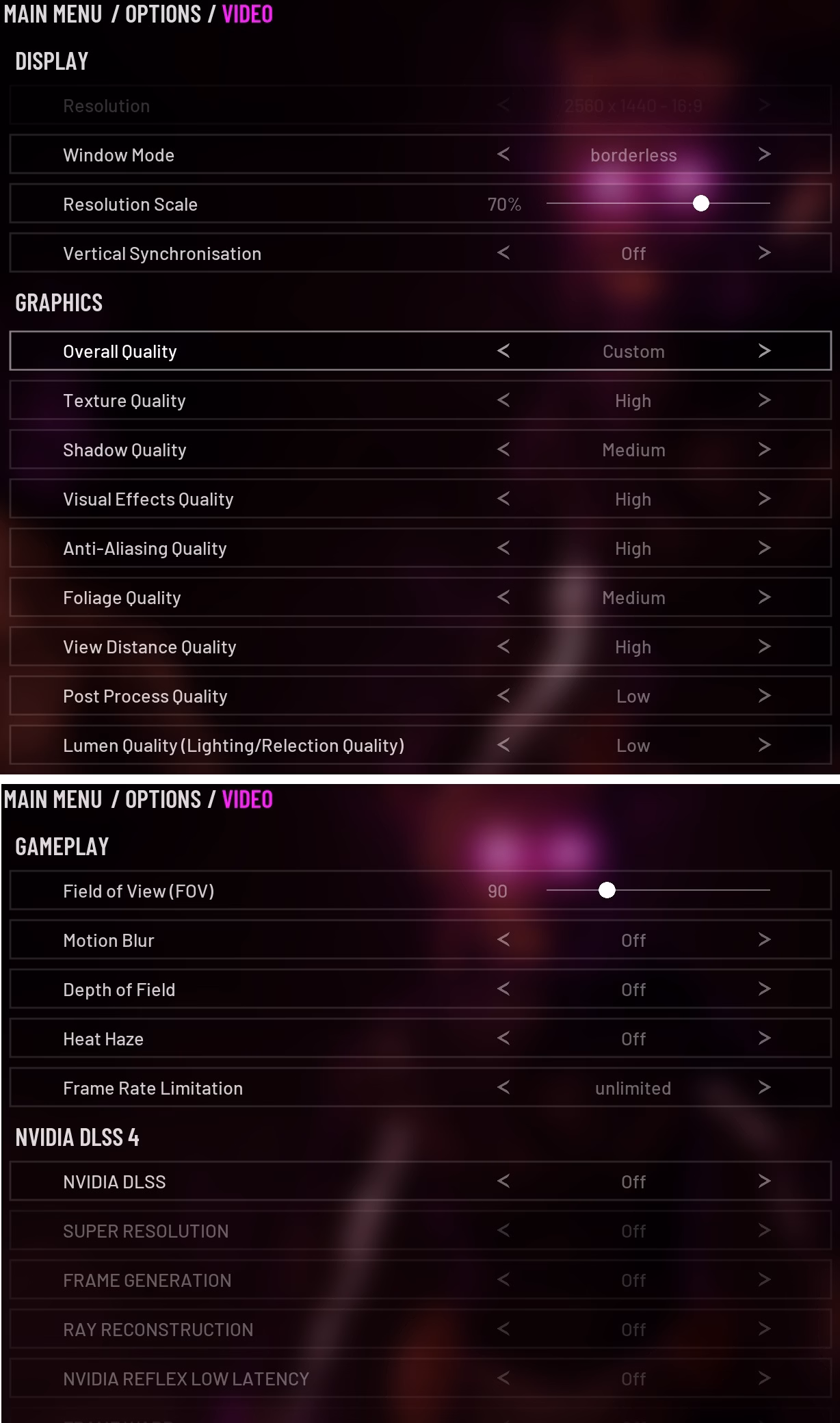 Resolution scale at 70% ... ( you can try ~65% ) for more FPS ; but don't lower too much, you'll lose in quality.