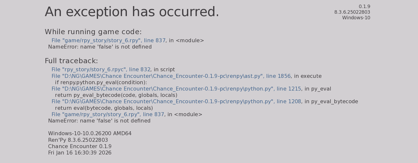 same issue, if you go the alternate routes and dont notice or stop lena from shagging every goblin around you get the error. still shows up regardless of what you pick in the bathroom with lena and the goblin. sadly, ignoring it wont let you pick intrigued.
