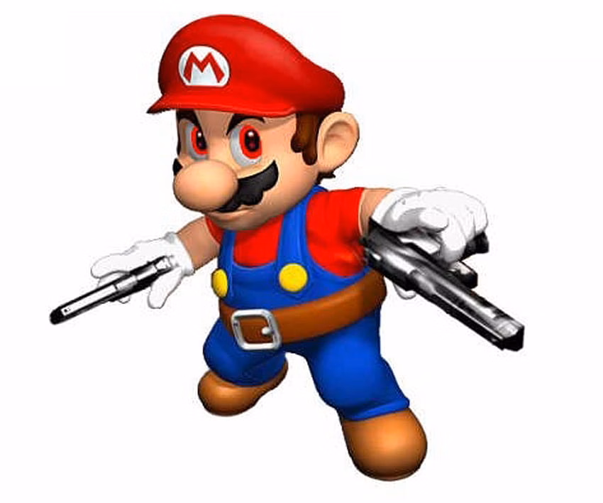 Mario with his realistic blood shot eyes and realistic guns then shot me 47 times the paramedics didn't arrive that time to save me from marios cave madnessI turn on the Nintendo cartridge, then Mario turns to the camera and looks at me and says, "Mama Mia FUCK" with red bloodshot eyes.