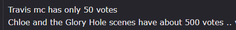 Oh, almost forgot, i hope, GDS i told you once before, but i also beg you now, dont make Travis' dick the up to chest-length. in FF his dick was perfect before the 2 last updates, but for some reason increased x3 times in tDA.
