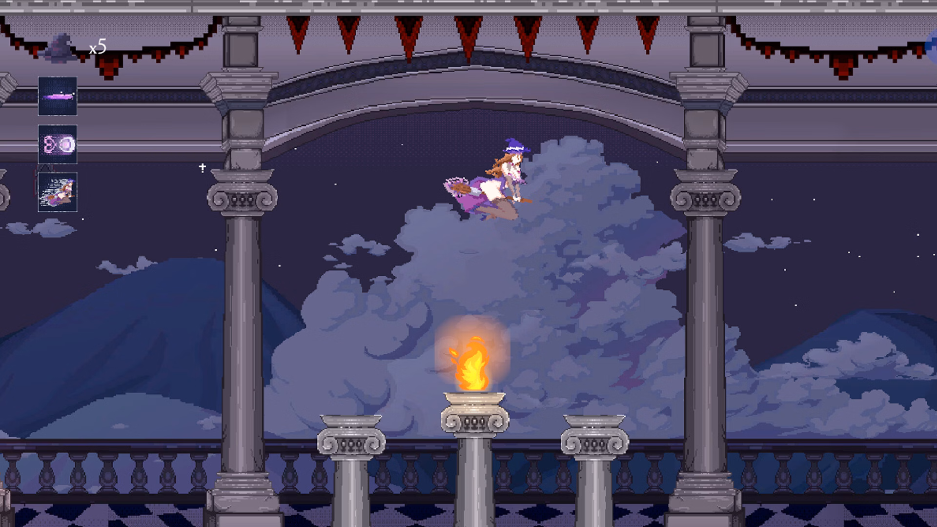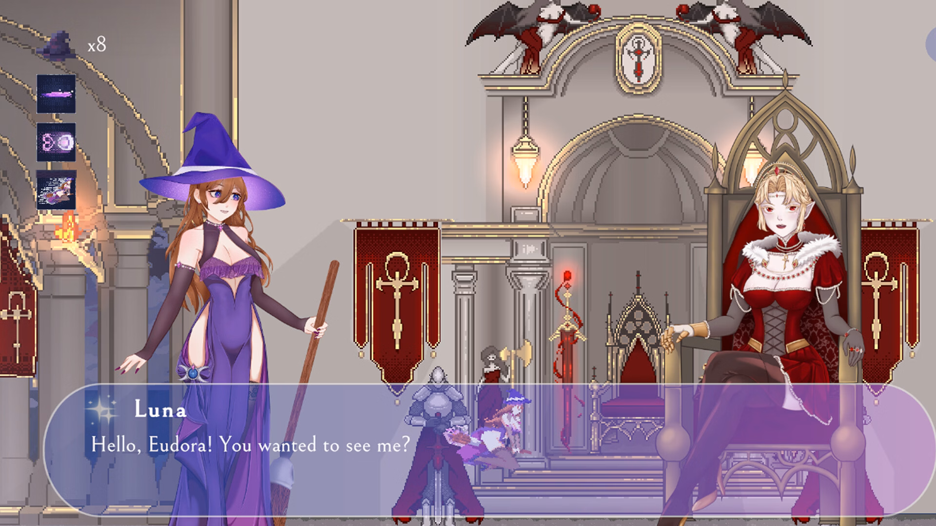 You enter this magical world as a mischievous witch. You are a human who is happy to serve the vampire queen in her castle, but your kind is not tolerated by her vampire subjects. But you have a suitor who sees you not as a source of food, but as someone to be desired. But before you can reach her voluptuous arms, there are tasks you must fulfill. Will you be able to control your lonely, impatient desires as you fly from place to place?