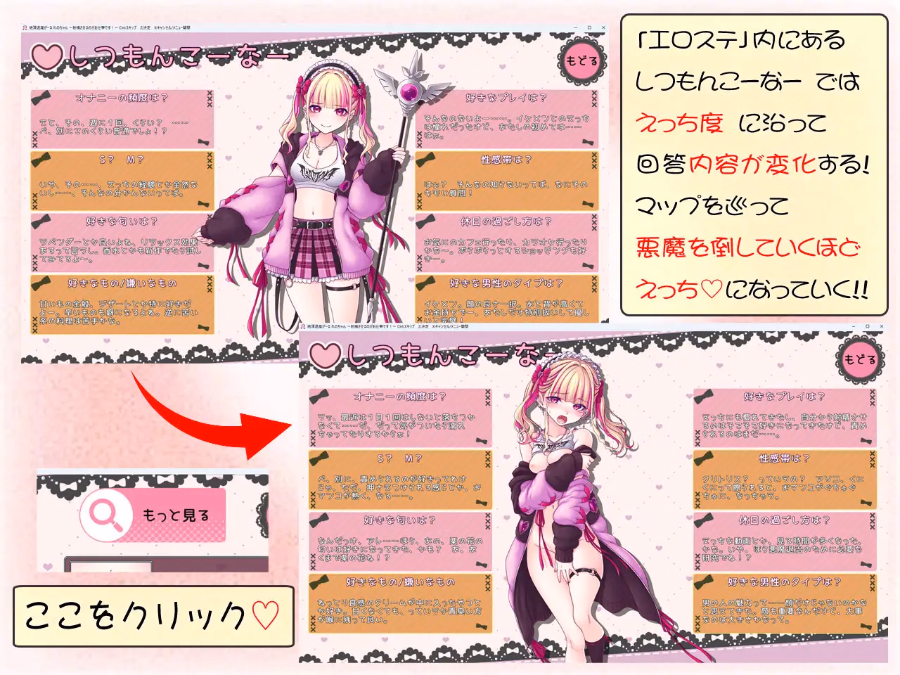 ・The erotic status changes as the game progresses, allowing you to check erotic comments and the development level.