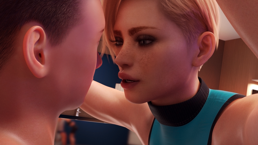 Alongside all that, I've also been trying to come up with a new workflow that might make my renders better, or at least give me more control and finesse. I learned how to use Marvelous Designer to do some cloth simulation on all the clothes (and not just the ones that have physics support in DAZ), and it allows me to do some undressing scenes like the one below, that were previously impossible without a ton of tedium, if even then.