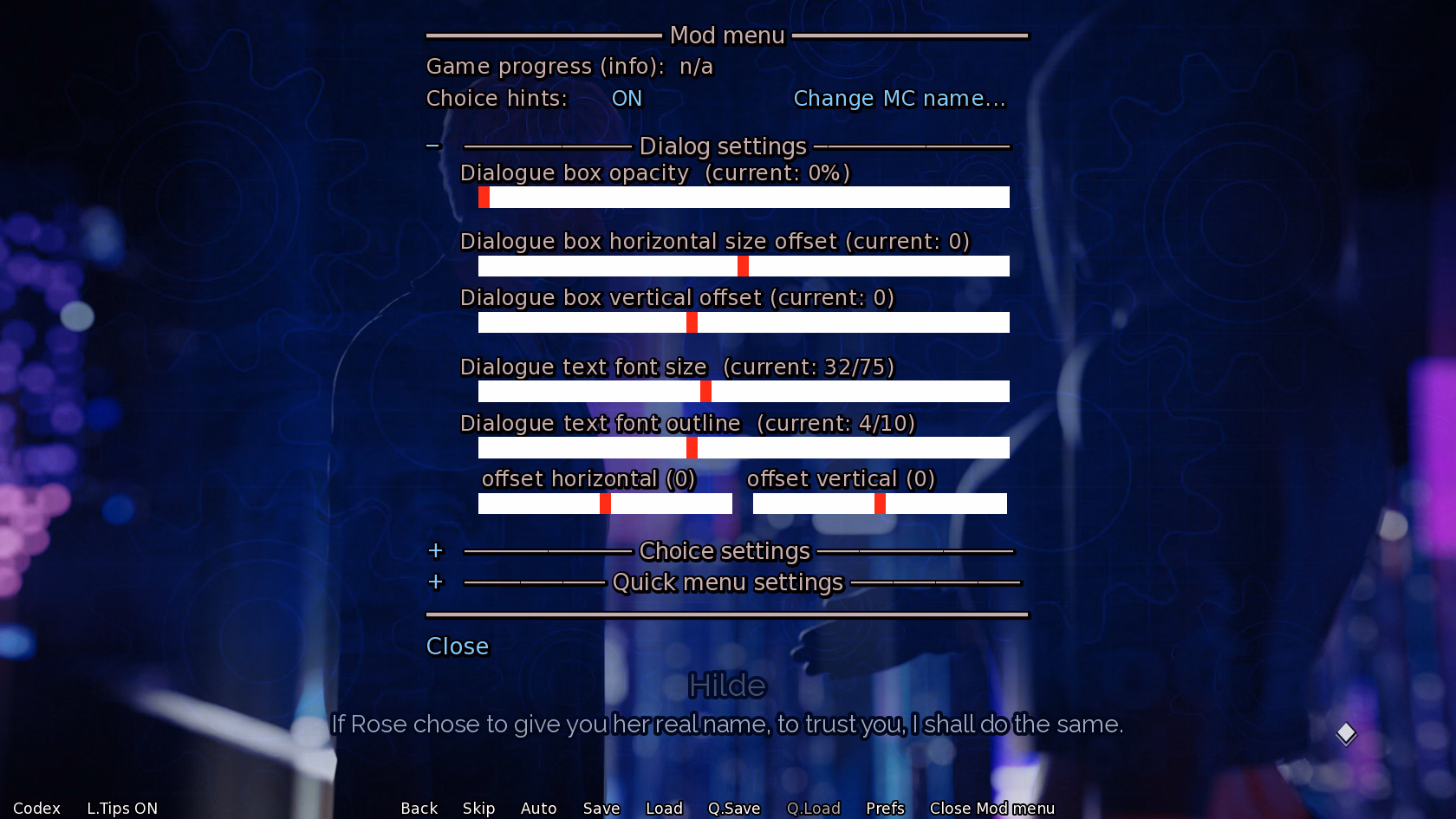 Thanks, can´t get it to workGo to the mod menu options in the dialog settings, I have no idea how the text is right centered for you since I tried to replicate it with no avail. Click on reset there if need and set the dialog again.