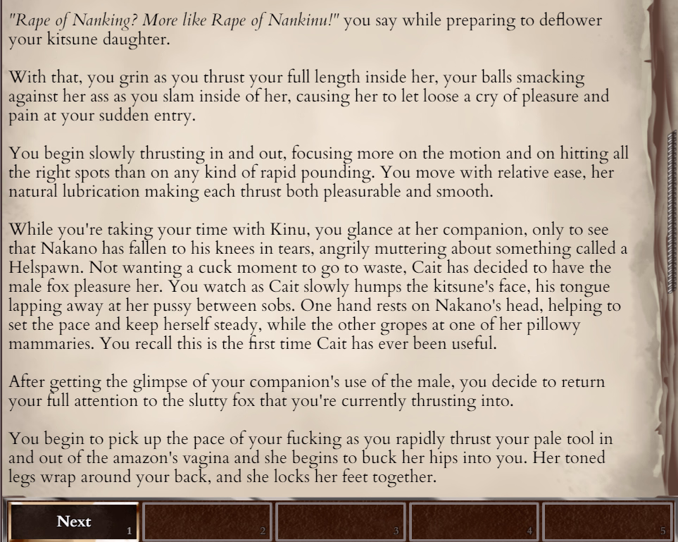 The reason we talk about him and his writing style is mostly because the in game kitsune daughter of the champion, Kinu, and the hilariously bad way she's implemented with the time skip and other stuff you might find along the thread, add to that the glassing of imperial Japan and the self insert commissioned Kinu porn and you'll get the picture