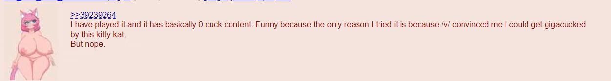 Someone from their camp came around with that as a statement before, that it was a passion project and, yeah, so was Manos, so was The Room (for Tommy, anyway), so was that Saints Row reboot that sucked shit. Passion is an attribute, not a catch-all.It really just shows that none of the people in charge of this game have any right to be leading game development. And I get it, "It's an indie project" "It's just a bunch of friends making a game". I would contend the fact that there are a circle of writers on payroll is enough to make this count as a professionally developed game. Though I'm not asking for full on structured game dev or crunch times or anything of the sort. Just, Savin was a writer on the first CoC and TiTs, surely he'd at least know to make things easier for people to get their writing into the game. That's how the previous two games were developed, on the back of a dedicated fanbase contributing to new content.