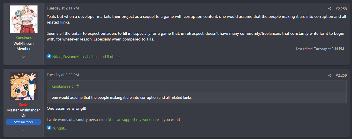 My bad, I have poor reading comprehension. I shouldn't have assumed Corruption of Champions 2 would have corruption content or a dev team into corruption content. That's my fault for judging a book by its cover.Must have assumed wrong when reading the title!!!