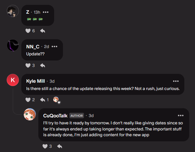 If that happens, honestly I'll be sad. They are so many games that I personally enjoy to a point I can be immersed in the story telling, where the developers isn't like u said responsive to feedback and can be categorized as milking, but so far to me this game hasn't been milking, I think the pacing is okay. Maybe I just missed the arc where this game has a remake or maybe multiple remakes of the same story like a certain NTR game. Not a lot of games can make me feel that pang of jealousy as if I'm the main character when I play NTR games, this game is one of them and I hope what people are speculating doesn't happen.