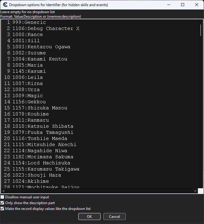 4. After reading all messages I see that Kanami cannot be cleared and CGs viewed. Is she the only one known so far? I saw that Maria and Leila can be done in part 2. I tried to change a unit into Kanami with the cheat table (the IDs for events) and that actually triggered the 1st event in Owari so that might be a workaround. Anybody knows the ID number as well so I can have her fully at some point? Also it would be nice to have actually a full list of character IDs.