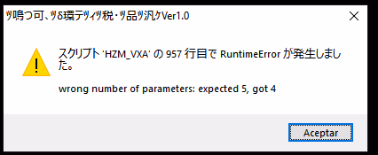 Are you having this same error that I've sent? The 1st picture? Even talking to someone in town gives that error apparentlyYes... I've solved it, apparently only the scene where he loses his virginity, but now I have another problem (it was there before) where if I try to talk to anyone, I get another error. This is crap. I prefer the game in Japanese and translate it myself with an automatic translator before they cause these errors.