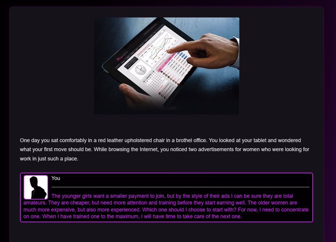 Honestly at this point I'm just here to tell people that nobody on this site can write a fucking overview. It's like everyone studied how to write an overview for a book and tried to apply it to a porn game.