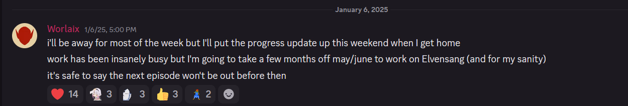 In his last Discord post back in January, the dev mentioned he still plans to work on