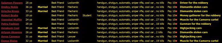 I also noticed that you have a lot of gang members working as muscle for the Camorra cartel when they aren't skilled enough and several died while advancing days with your save game. Ideally they should be high level soldiers with a maxed boxing and shooting skill.