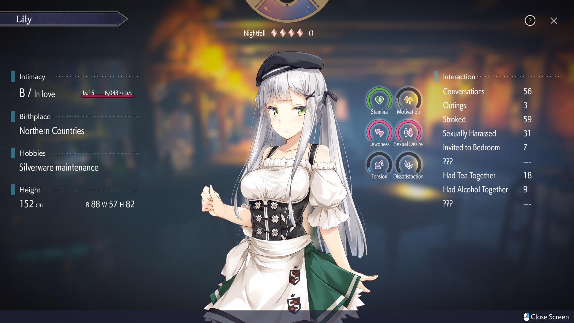 which I had to grind another 20 ingame days for (you normally only get to +3 through tidying the tavern rooms you get the last +1 from a super rare drop "Frozen Godstone" from gathering materials in outskirts .