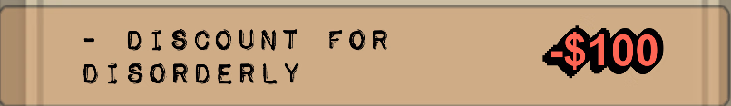 Did you cum in a jar? I believe it's because of that. Not sure about the last question though, hope someone can answer this.Does anyone know what the Discount for disorderly payment penalty is caused by? I have gotten it several times in my runs but I can't seem to find a cause for it. And also does it invalidate a night from being complete? View attachment 5086538