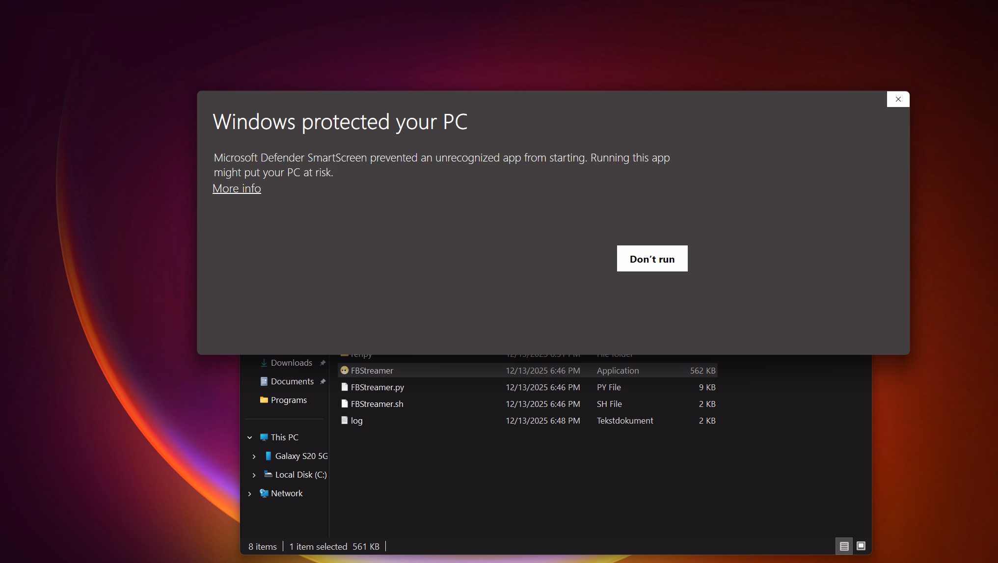 Read the message. This just means the .exe is not digitally signed by Microsoft, nothing more, nothing less.