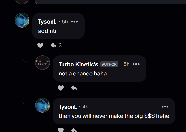 TurboKinetics, oh no... With a name like that please don't tell me that this is just another one with a string of forced lewd scenes with a blatant disregard for player preference and an absolute lack of agency. Only half joking, but the other half is very worried it's just another hidden KN.