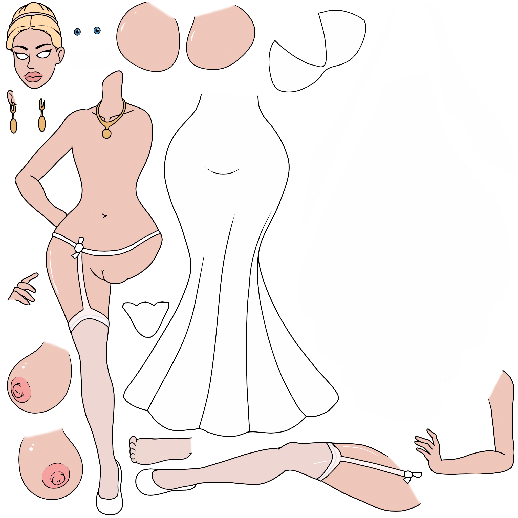 But a few games, especially Deep Space, look different when you rip the files. Instead of full poses, you see a 2D atlas made up of body parts — arms, legs, torso, head, etc. That doesn’t mean it’s 3D or auto-rigged. The parts themselves are still hand-drawn artwork, but the game organizes them into pieces so it can reassemble or reuse them more efficiently. As you can see, all of the parts are there for both nude and fully clothed versions. He does also use a new method where he rigs them directly in the engine but uses a base image but I don't fully understand that one.