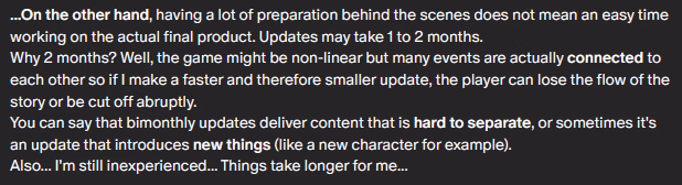 If you want an actual guess as to why the dev is once again focusing on the Netori path; going by his recent posts it seems like the Depravity/FxF path are kinda like a easy buffer to write so he doesn't leave us without updates while he plans the Netori path out, now that he's got it planned out more he's going back to it, not to mention he did say he'd go back and forth like this if I recall correctly