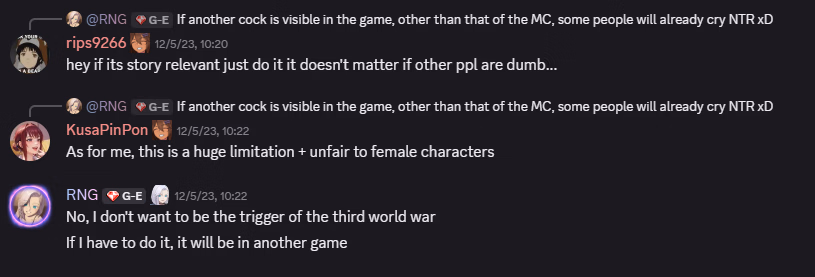I genuinely cannot tell if author loves the kink so much that they just itching to put it into the game, or hates it to the point of enjoying the interrupted cuckoldry.